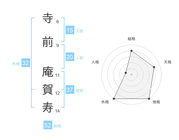 寺前 庵賀寿さんの総格は52画の4点!