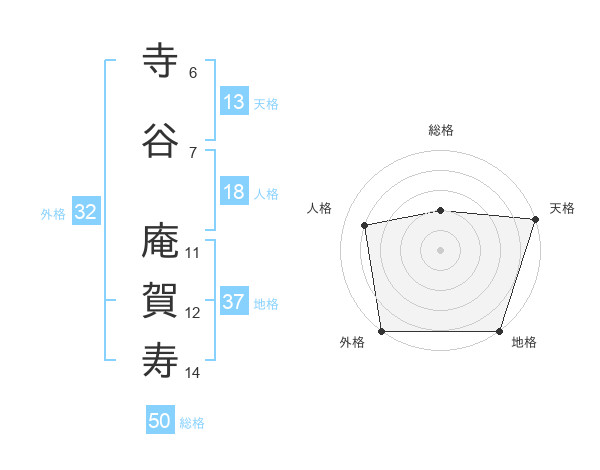 寺谷 庵賀寿さんの天格は13画の5点!