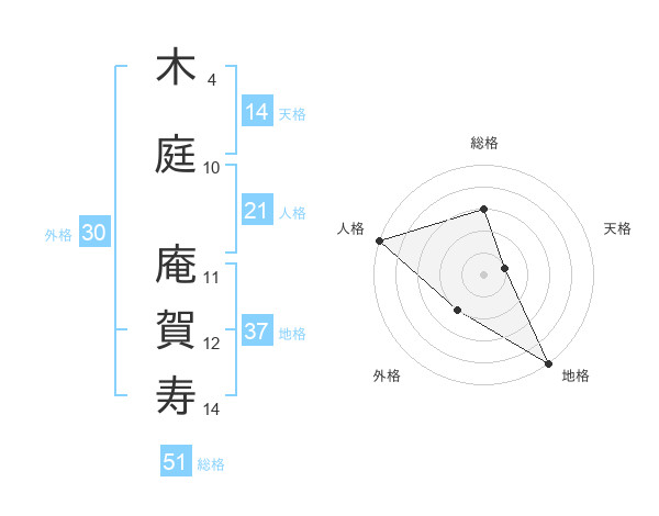 木庭 庵賀寿さんの総格は51画の3点!