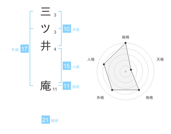 三ツ井 庵さんの総格は21画の5点!