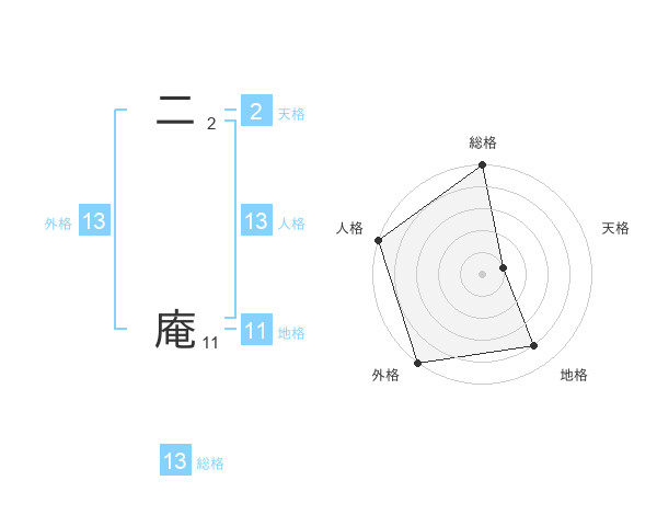 二 庵さんの総格は13画の5点!