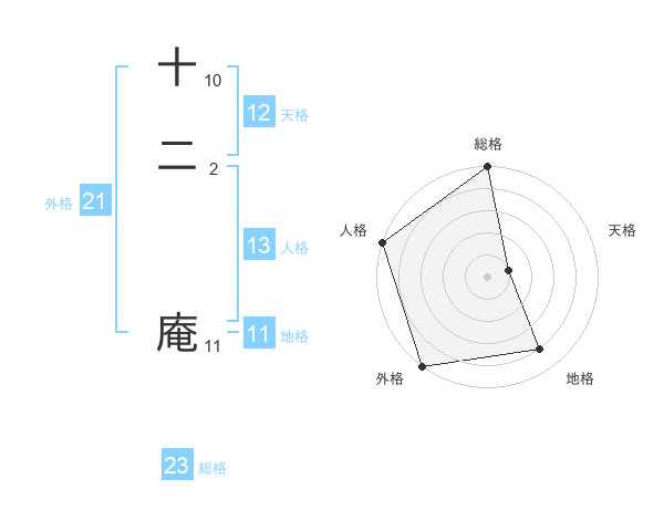 十二 庵さんの総格は23画の5点!
