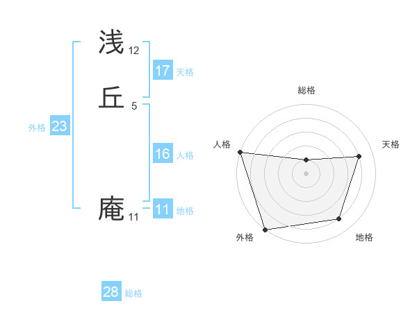 浅丘 庵さんを姓名の画数から五運を鑑定