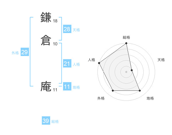 鎌倉 庵さんの地格は11画の4点!
