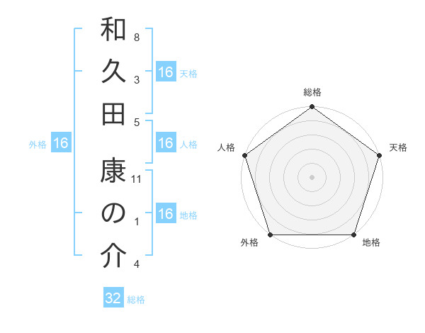 和久田 康の介さんを姓名の画数から五運を鑑定