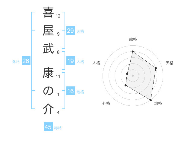 喜屋武 康の介さんを姓名の画数から五運を鑑定