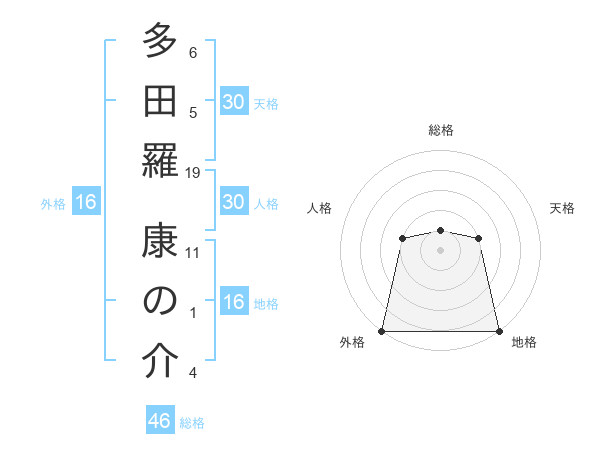 多田羅 康の介さんの地格は16画の5点!