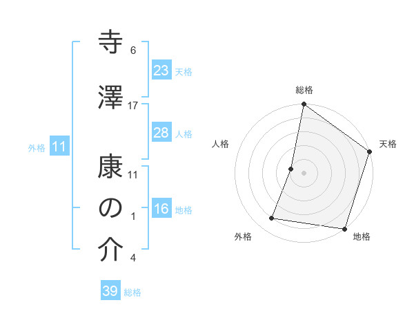寺澤 康の介さんを姓名の画数から五運を鑑定