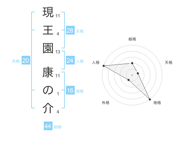 現王園 康の介さんを姓名の画数から五運を鑑定