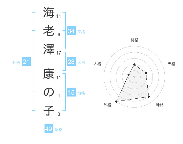 海老澤 康の子さんの外格は21画の5点!