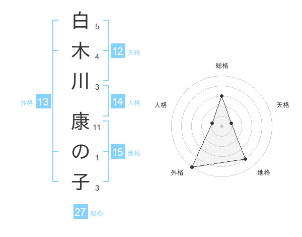白木川 康の子さんを姓名の画数から五運を鑑定