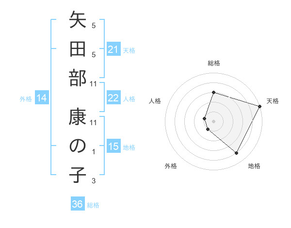 矢田部 康の子さんの天格は21画の5点!