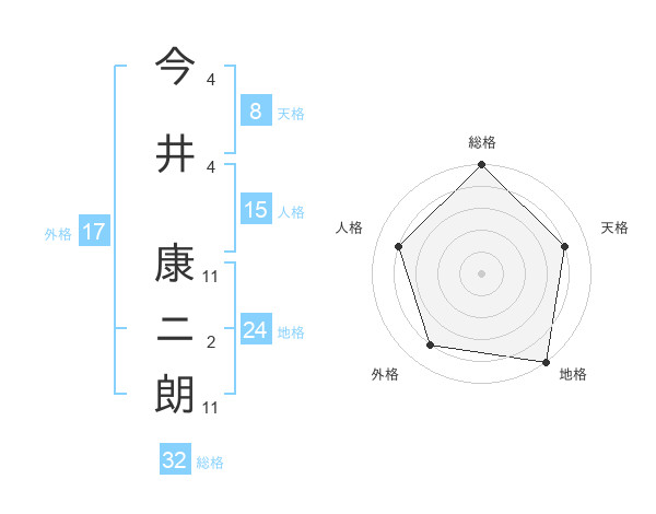 今井 康ニ朗さんを姓名の画数から五運を鑑定