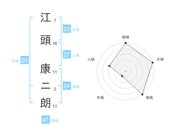 江頭 康ニ朗さんを姓名の画数から五運を鑑定