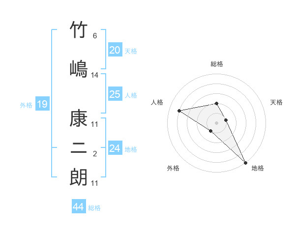 竹嶋 康ニ朗さんの総格は44画の2点!