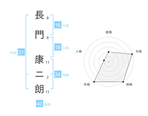 長門 康ニ朗さんを姓名の画数から五運を鑑定