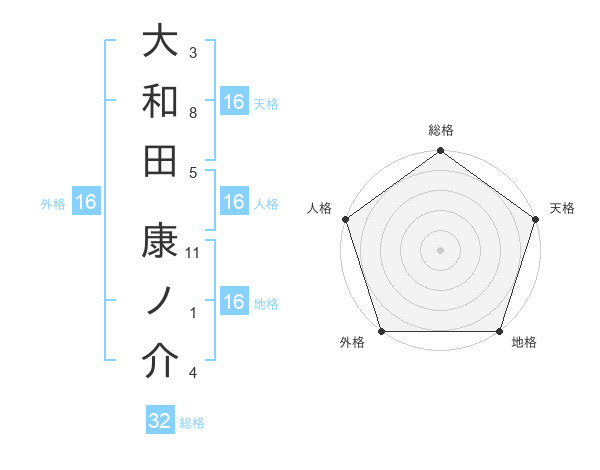 大和田 康ノ介さんの総格は32画の5点