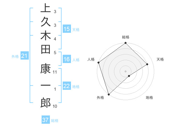 上久木田 康一郎さんの総格は37画の5点!