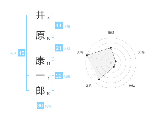 井原 康一郎さんを姓名の画数から五運を鑑定