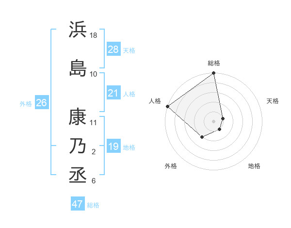 浜島 康乃丞さんを姓名の画数から五運を鑑定