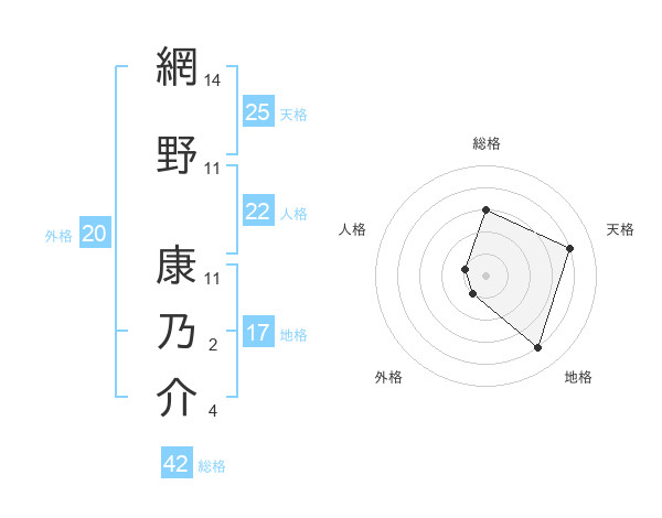 網野 康乃介さんを姓名の画数から五運を鑑定