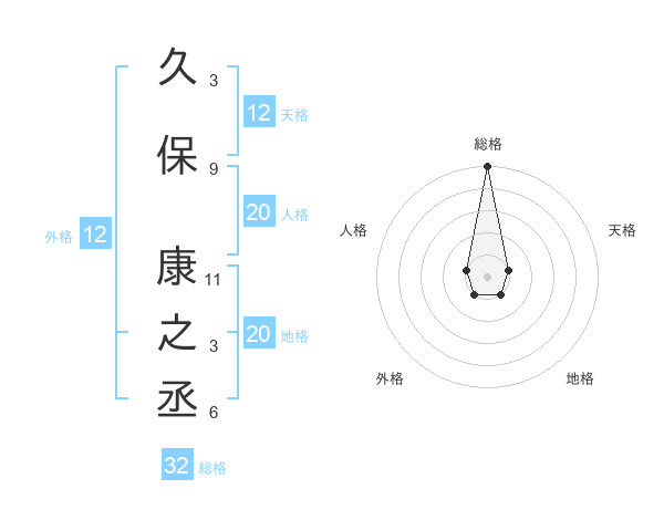 久保 康之丞さんの総格は32画の5点!