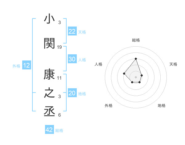 小関 康之丞さんの総格は42画の3点
