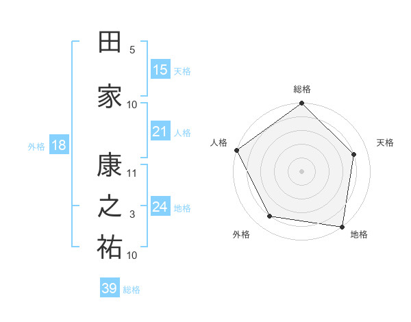 田家 康之祐さんを姓名の画数から五運を鑑定