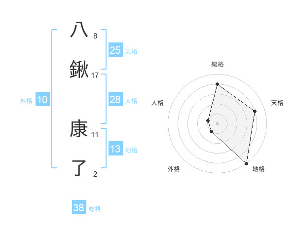 八鍬 康了さんの総格は38画の4点!