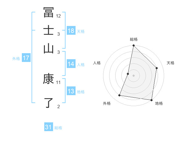 冨士山 康了さんを姓名の画数から五運を鑑定