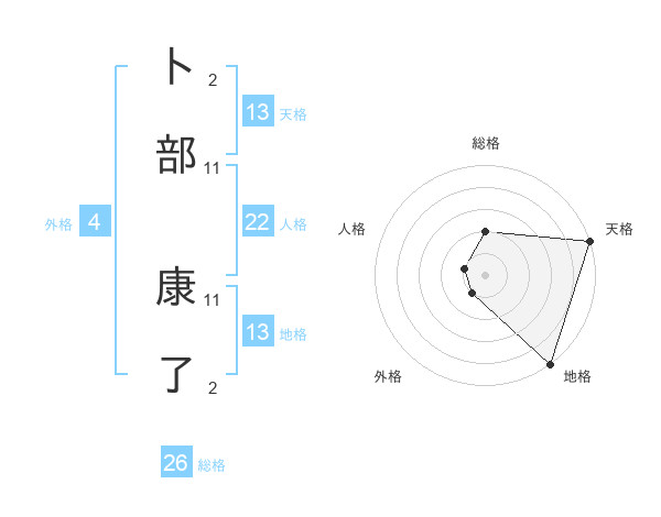 卜部 康了さんの天格は13画の5点!