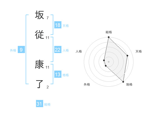 坂従 康了さんの総格は31画の5点!