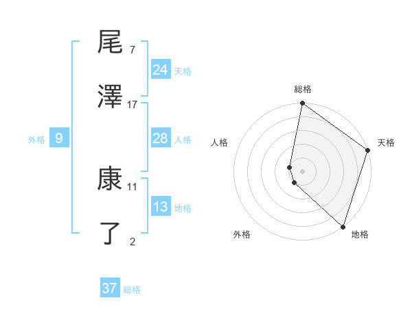 尾澤 康了さんを姓名の画数から五運を鑑定