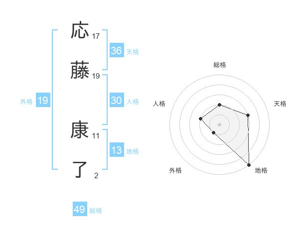 応藤 康了さんの地格は13画の5点!