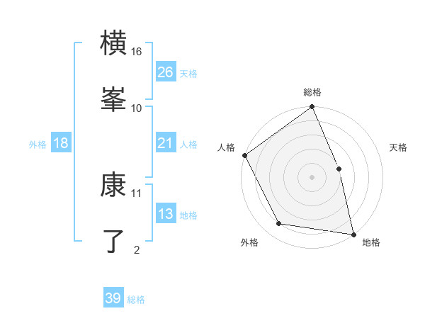 横峯 康了さんの総格は39画の5点!