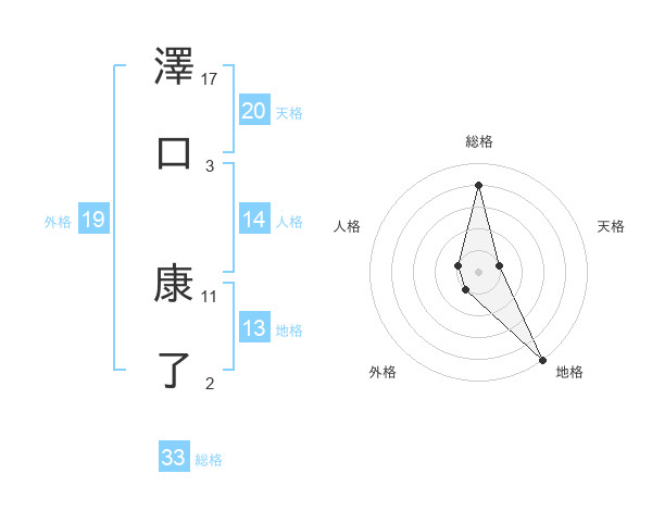 澤口 康了さんの天格は20画の1点!