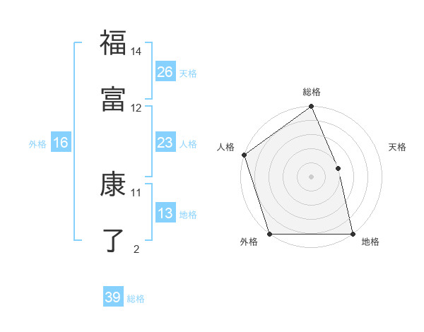 福富 康了さんの総格は39画の5点!