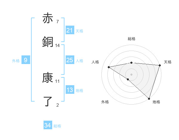赤銅 康了さんを姓名の画数から五運を鑑定