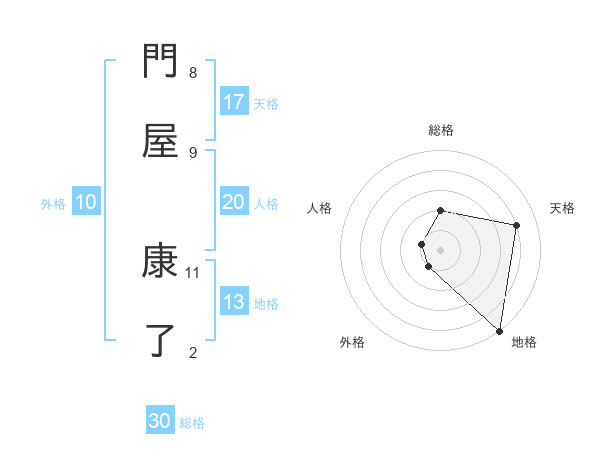 門屋 康了さんの総格は30画の2点!
