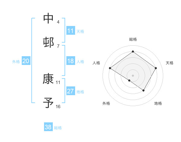 中邨 康予さんの総格は38画の4点!