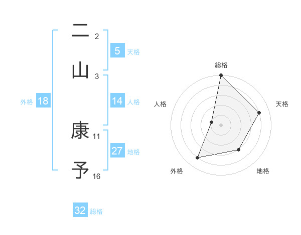 二山 康予さんの総格は32画の5点!