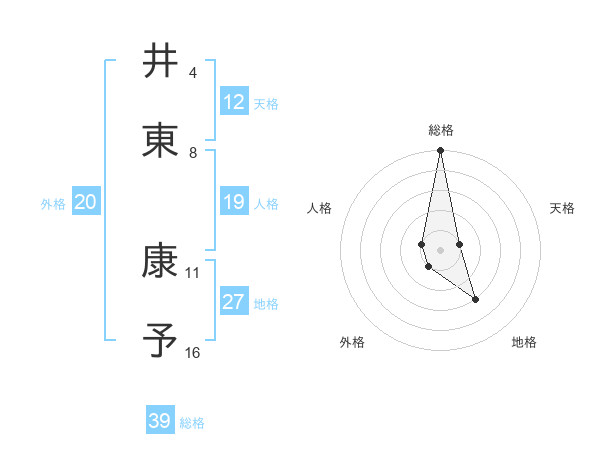 井東 康予さんの総格は39画の5点!