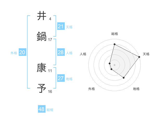 井鍋 康予さんの天格は21画の5点!
