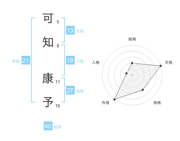 可知 康予さんの天格は13画の5点!