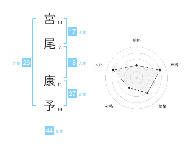 宮尾 康予さんの総格は44画の2点!