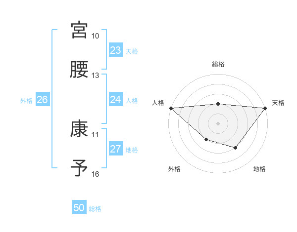 宮腰 康予さんを姓名の画数から五運を鑑定