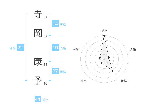 寺岡 康予さんの総格は41画の5点!