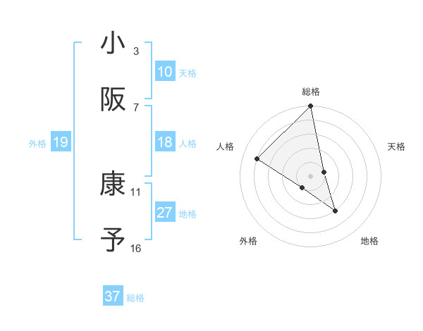 小阪 康予さんの総格は37画の5点!