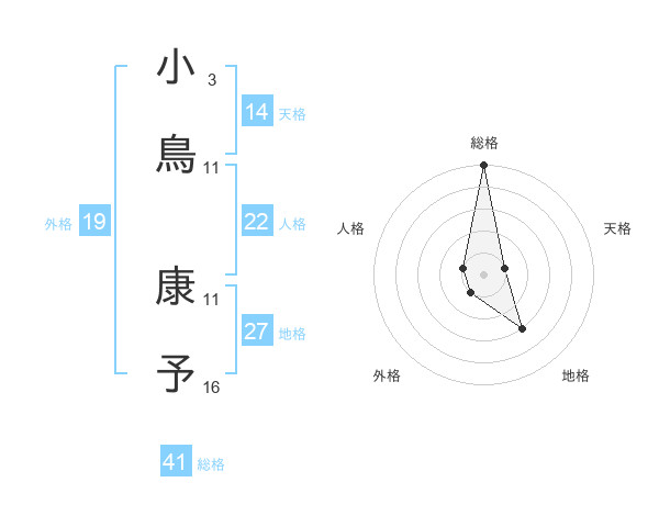 小鳥 康予さんの総格は41画の5点!