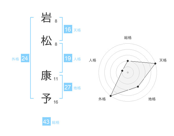 岩松 康予さんの総格は43画の2点!